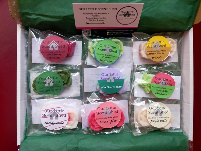 Each box contains 2 each of 9 different Christmas scents from our Christmas collection. A perfect way to decide which of our scents are your favouri