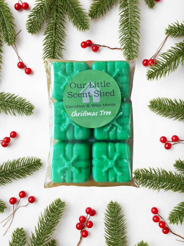 Our Christmas Tree wax melts release the aroma of fresh pine needles, subtle woody notes of patchouli, cedarwood with musky notes encapsulating the atmosphere of Christmas.