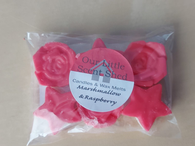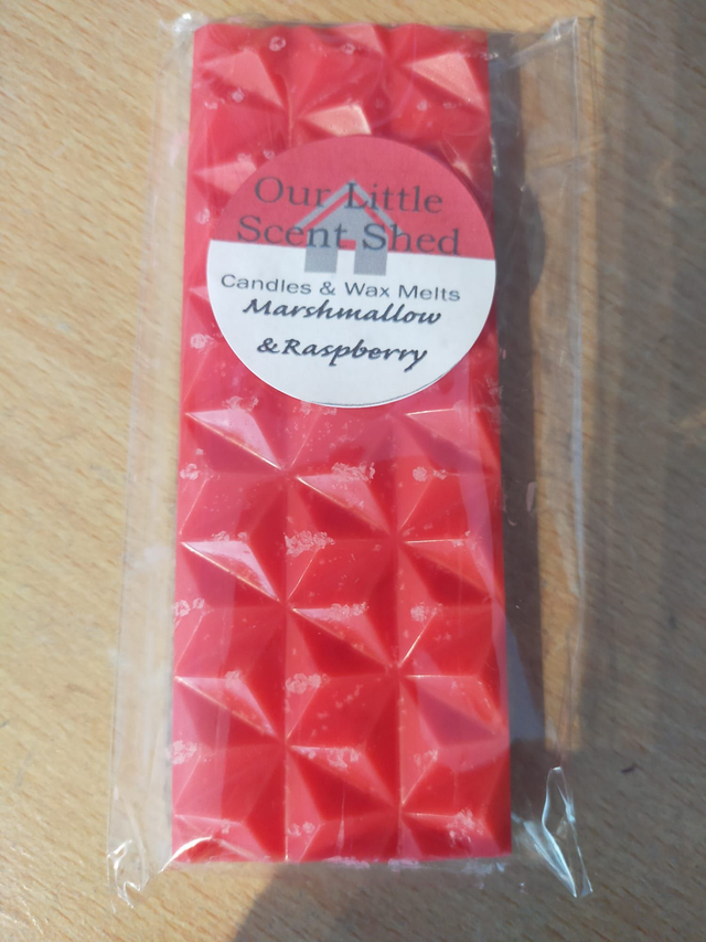Our Marshmallow & Raspberry wax melts release strong, sweet fragrance bringing fruity vibes to a sweet marshmallow base. Sticky marshmallow notes of vanilla and musk with top notes of fresh ripe raspberry.