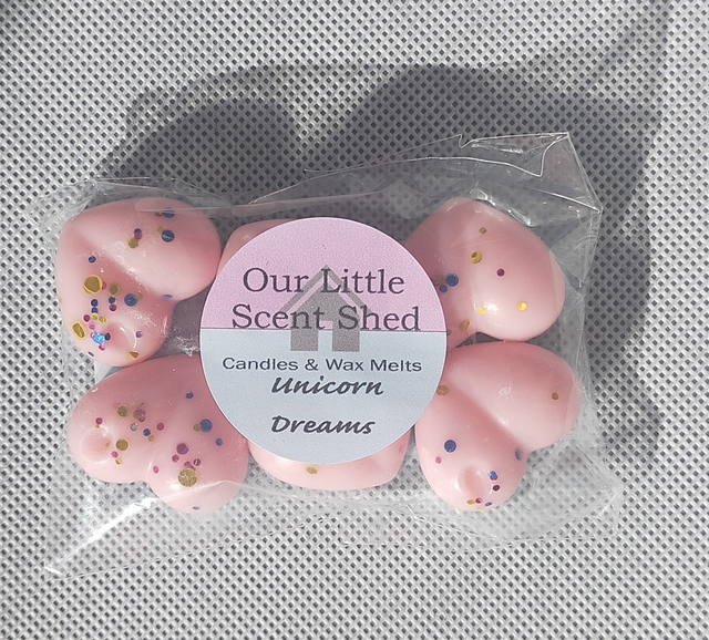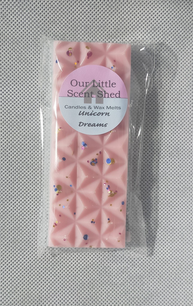 Our Unicorn Dreams wax melts are a rich, musky floral fragrance with top notes of violet supported by notes of rose, lily and jasmine, resting on a base of