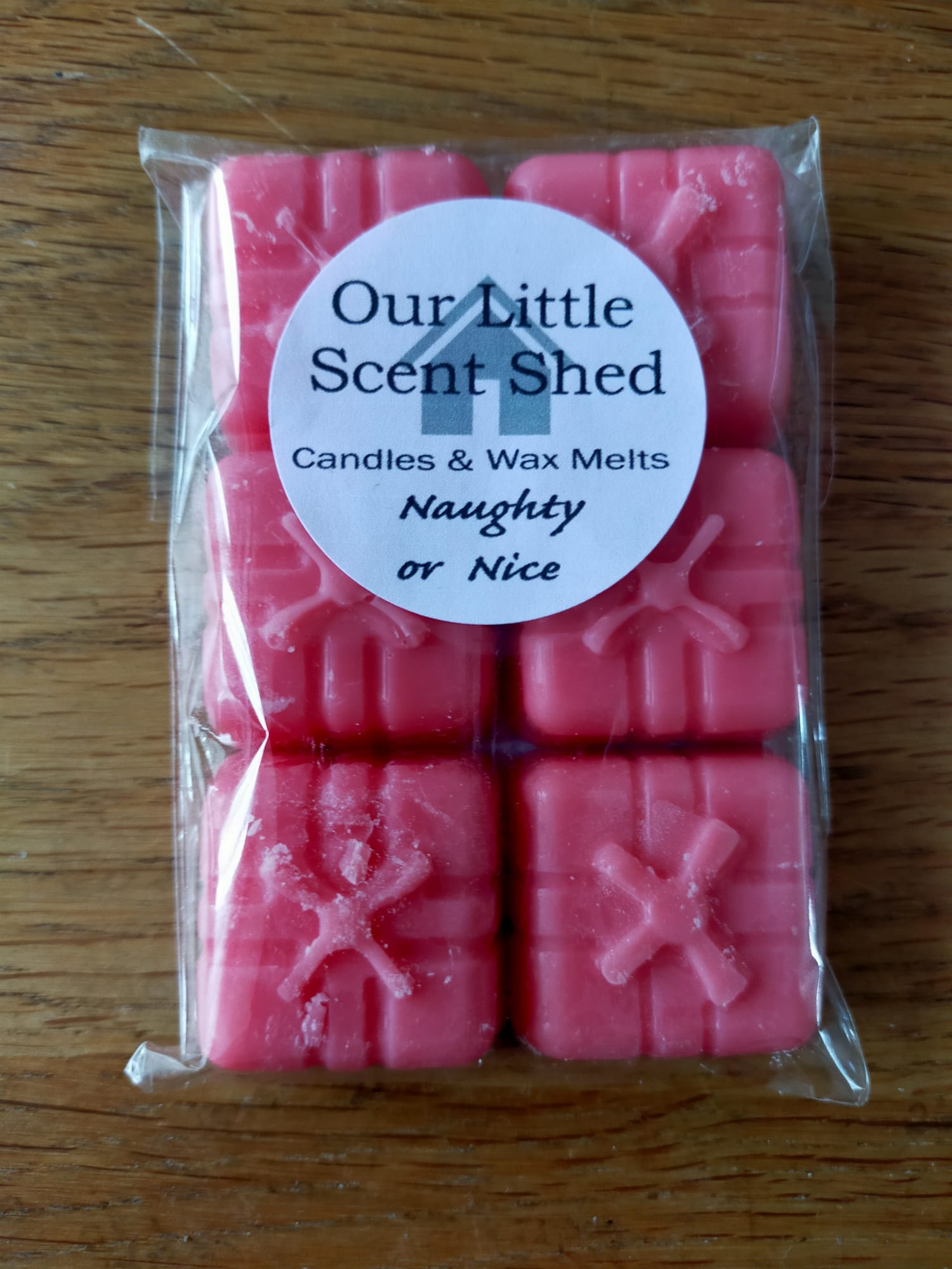 Our Naughty 0r Nice wax melts are a delicious edible smelling accord Starting with top notes of rich salted caramel, followed by notes of milky vanilla, sweet sugar and creamy almond.
