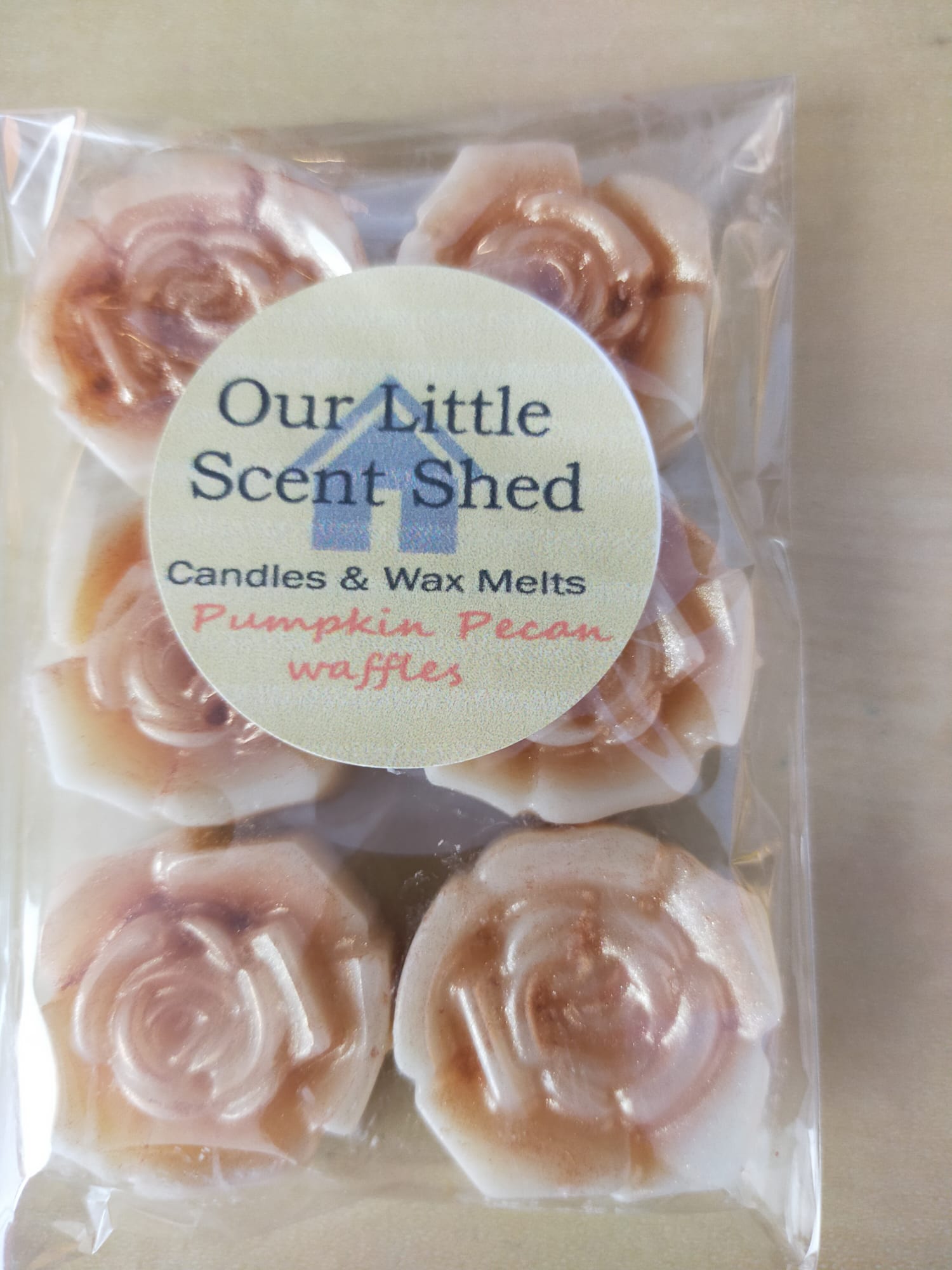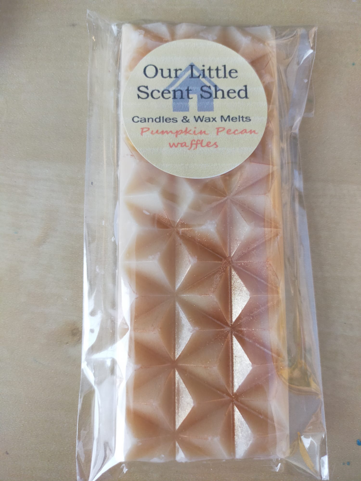 Our Pumpkin Pecan waffles wax melts are reminiscent of soft warm pecan waffles, leading to middle notes of sweet pumpkin drizzled with sticky maple syrup with the comforting warmth of a hint of cinnamon. All rounded up with the added sweetness of brown sugar. A perfect autumn breakfast fragrance.