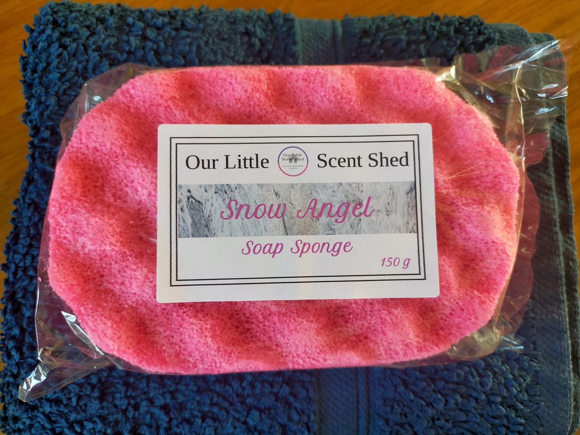 Our Snow Angel Soap Sponges have a sweet, creamy fragrance starting with fruity top notes of banana, cherry, and peach. Followed by floral middle notes of rose, orris and jasmine. Leading to woody bottom notes of vanilla, musk and complex white woods.